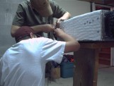 We finally order our batteries and hook up temporary switches to test Logan's power. The results were impressive! At 1/6th power, Logan can out-pull 4 team members. | |